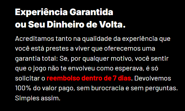 Sim! Se você não gostar do jogo, pode solicitar reembolso em até 7 dias após a compra.